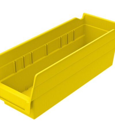 Stop replacing worn-out, flimsy corrugated bins. The Shelf Bin outlasts corrugated bins and is designed to fit standard 12″ deep shelving or Akro-Mils Bench Pick Rack. It is ideal for economical storage or display uses. Superior construction allows them to be fully loaded without bulging or cracking. Durable, industrial-grade polymer bins also provide an attractive, neat appearance. The bins are seamless, waterproof, grease-resistant and oil-resistant. Rear hanglock allows bins to tilt out on shelving for complete access. Bin also features a wide label holder.
