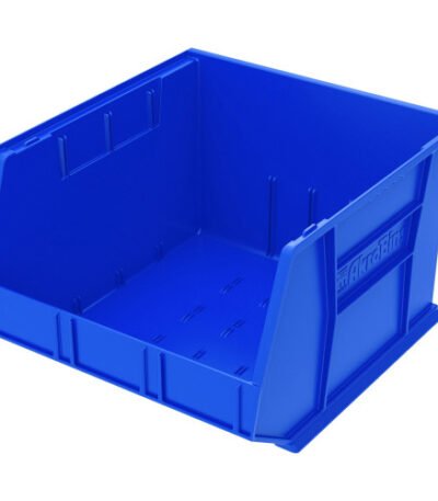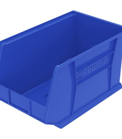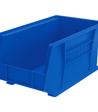 Develop an efficient storage system using these versatile bins that stack with each other or sit on shelving. Take back valuable floor space by hanging from Akro-Mils louvered panel (sold separately) hanging systems. Injection-molded, blue industrial-grade polymer bins are virtually unbreakable and waterproof.