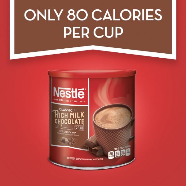 Bring a classic flavor to your home with the NESTLE Rich Milk Chocolate Hot Cocoa Mix 27.7 oz. Canister. It comes in a variety of sizes so you can enjoy just what you want. The Nestle hot cocoa mix is simple to prepare for your convenience. It comes in a large tub that allows for easy dispensing. The canister provides up to 30 percent of the recommended daily value of calcium in each tasty serving. It’s also gluten-free to accommodate special dietary needs. The chocolate is mostly caffeine-free too.