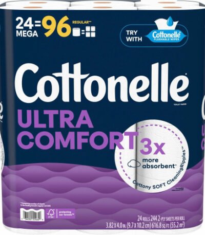 Give yourself the superior performance and softness of Ultra Comfort Toilet Paper. It features cottony soft CleaningRipples that deliver unbeatable comfort that cleans better. Toilet paper is three times more absorbent to help you feel comfortably dry. FSC-certified sheets are made with 100 percent plant-based fibers sourced from responsibly managed forests. Two-ply sheets are free of added perfumes and dyes.